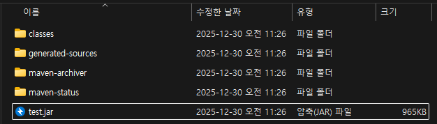 - 파일위치: 프로젝트 root경로 target에 프로젝트명.jar파일
